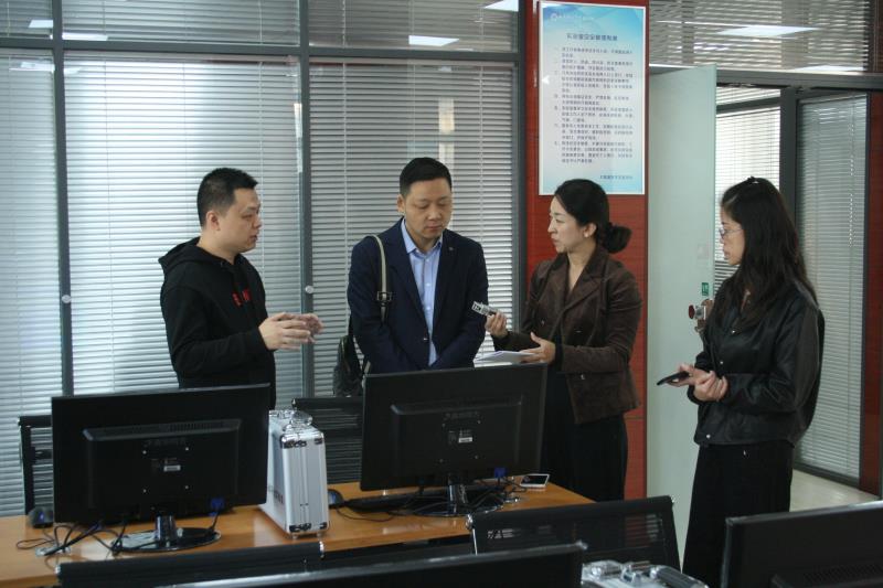 2018年10月12日上午,咸阳师范学院计算机学院副院长郭新明一行来澳门pg参观大数据技术实验室。澳门pg官方电子平台院长岳忠玉、副院长丁琦、计算机学院院长杨俊清、校企合作西安启光信息技术有限责任公司总经理王莺陪同参观。
