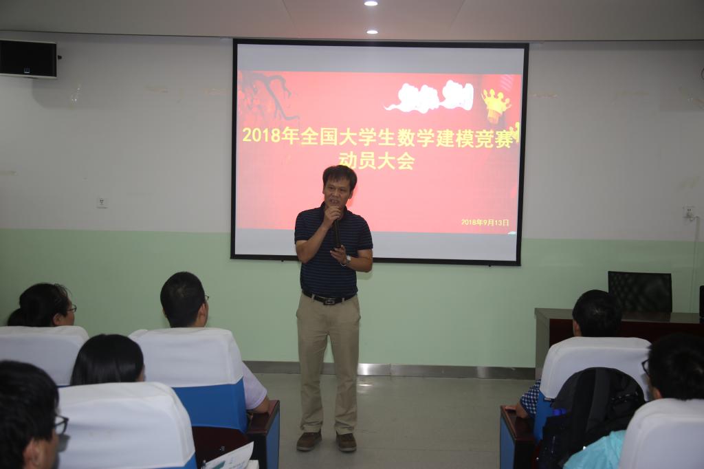 首先,宋文学作了动员讲话,他指出近几年西航学子在全国大学生数学建模竞赛中取得了骄人的成绩,尤其是2017年,澳门pg取得本科组全国二等奖2项,省奖11项。他鼓励同学们全身心投入比赛,相互协作,顽强拼搏,争取在竞赛中取得优异成绩。