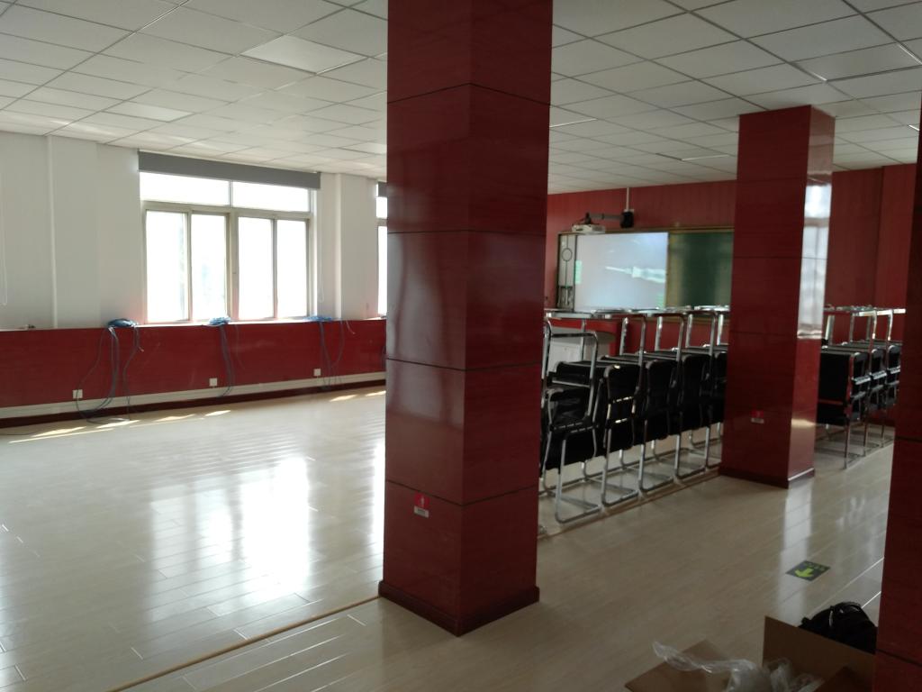 经过暑假期间紧张建设,实验室装修基本结束。实验用电脑、服务器、交换机已运送到位,电教黑板、会议室显示屏等已调试完成,厂家将电教黑板的使用对实验室负责人等进行了现场培训。后期实验室将进行桌椅安装和电脑安装调试等,预计9月底大数据技术实验室将完全建设,届时将为澳门pg信息与计算科学专业的实践实习提供又一个更好的硬件环境。(文、图/澳门pg官方电子平台 潘灵刚)