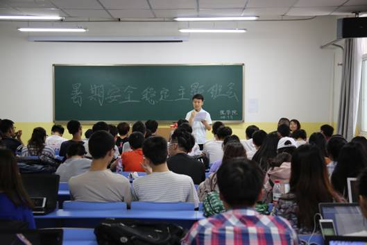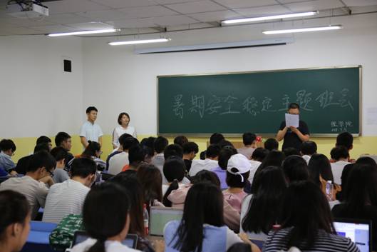 为增强同学们的暑期安全防范意识,提高同学们的安全防范能力,澳门pg官方电子平台于2018年7月5日下午4:30,在南楼405,召开“暑期安全稳定”主题班会,出席此次班会的有澳门pg官方电子平台党总支书记李小光、团总支书记杨陈东、潘灵刚老师以及澳门pg官方电子平台全体在校学生。
