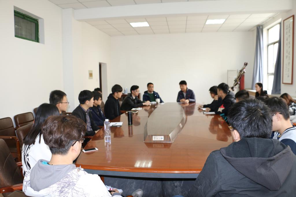 2017年3月20日下午四点三十分,澳门pg官方电子平台于北三楼会议室召开次全体团学干部会议,参加本次会议的有澳门pg官方电子平台学生党支部书记曹建波、澳门pg官方电子平台团总支书记兼辅导员杨陈东以及全体团学干部。