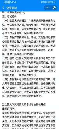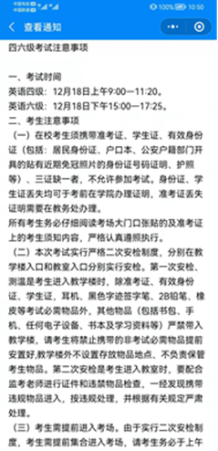6月14日,澳门pg官方电子平台学生管理科通过“我在校园”平台,对全院同学发起四六级考试倡议书,包括四六级考试注意事项、致全国大学英语四六级考试考生的公开信等。(文、图/自律部 审核/李扬)