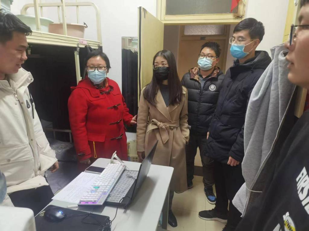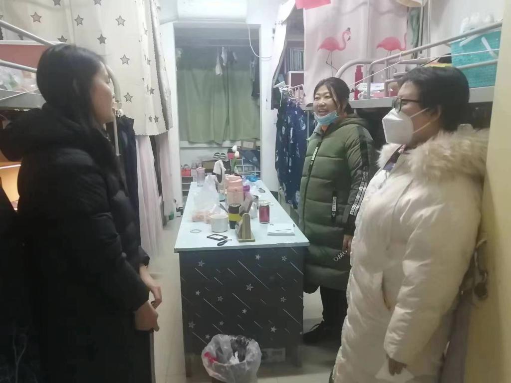 澳门pg官方电子平台党政领导走访学生公寓,看望返校学生。党总支书记李小光、副院长丁琦、学生管理科长李扬、辅导员张岩、王向阳在学生返校当天走访了学生宿舍,并与学生热情沟通交流,了解学生动态、询问考试复习状况、学生就业工作情况等。