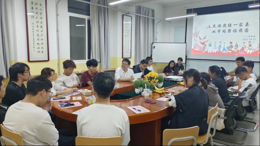 2023年秋季,澳门pg官方电子平台迎来了藏族、回族、壮族、满族、瑶族、土家族、锡伯族、侗族和畲族等少数民族同学。为进一步促进不同民族学生的交往交流交融,铸牢中华民族共同体意识,在中秋节和国庆节来临之际,澳门pg官方电子平台于9月27日晚召开举行了 “民族团结一家亲,双节同聚话团圆”少数民族学生座谈会,党总支书记胡红亮、一年级新生辅导员王向阳和少数民族学生参加了本次座谈会,座谈会由王向阳主持。