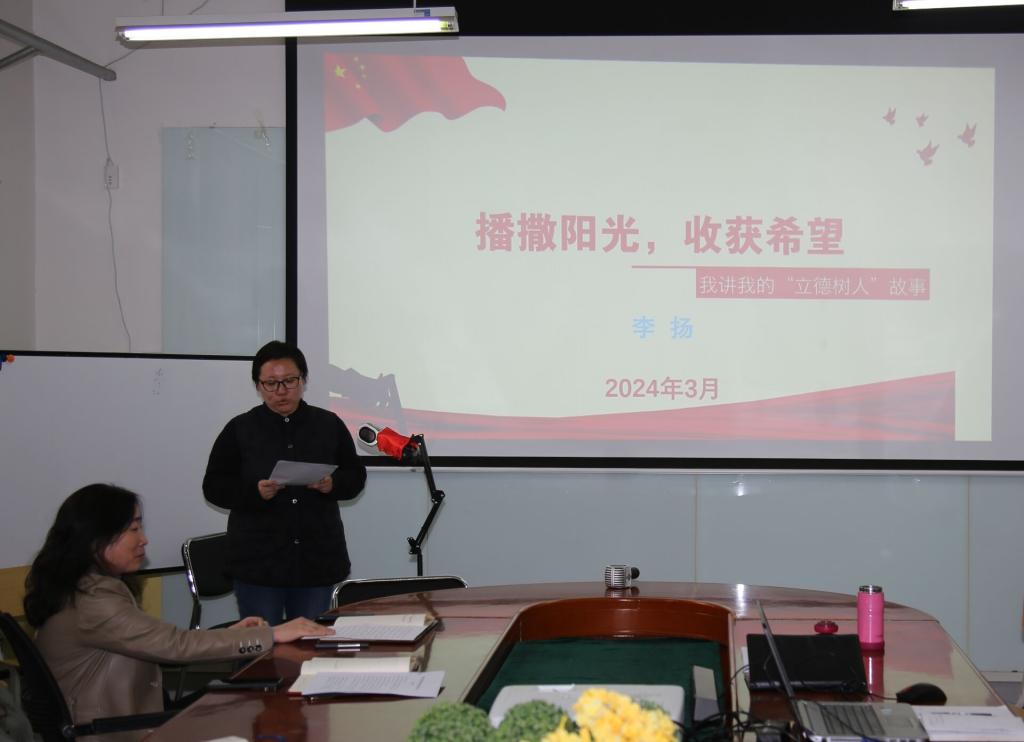 自校党委教师工作部在全校开展“我讲‘我的立德树人’故事”主题活动开展以来,澳门pg官方电子平台党总支认真组织安排,全体教师满怀热情积极参加,前期在以教研室为单位开展宣讲的基础上,3月15日下午,澳门pg官方电子平台党总支举行了“我讲‘我的立德树人’故事”主题活动集中宣讲暨总结会。