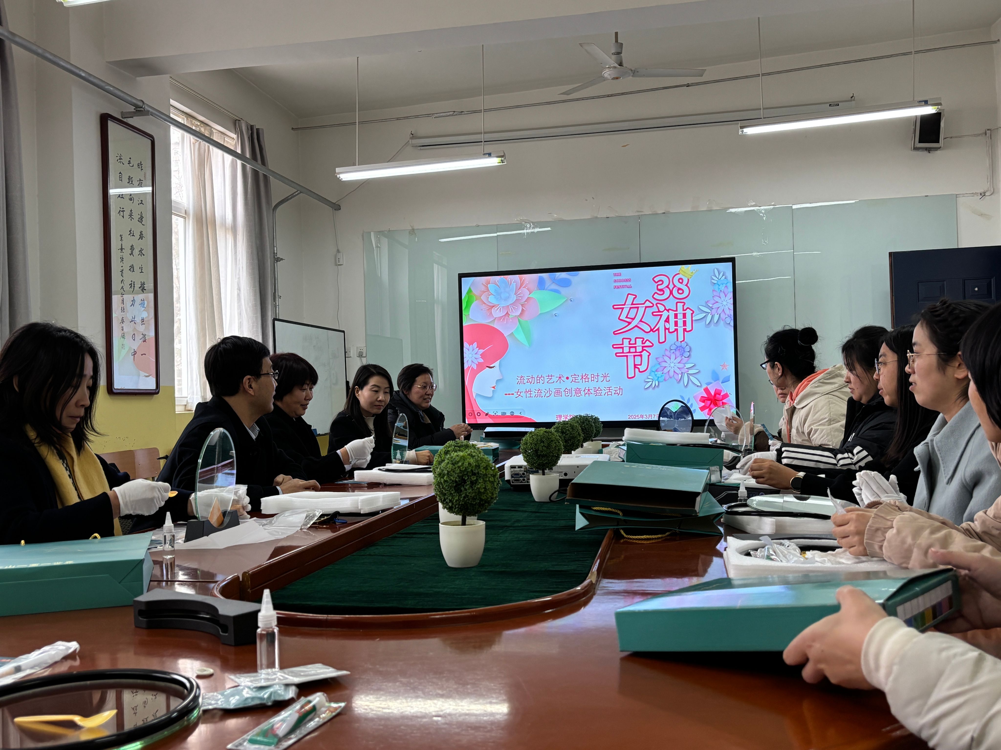 为庆祝“三八”国际妇女节,丰富女教师的精神文化生活,3月7日,澳门pg官方电子平台分会组织女教师在南428开展了“流动的艺术·定格时光—女性教师流沙画创意体验”活动,吸引了众多女教职工积极参与,现场氛围温馨而欢乐。