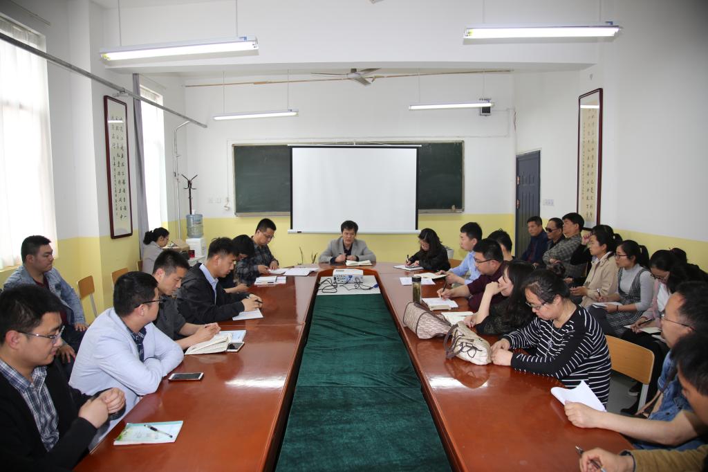 会上,岳忠玉首先带领大家学习了,学校第二次党代会上陈平社书记做的工作报告。接着,他传达了《澳门pg官方电子平台2018年教职工政治理论学习安排意见》的精神。对八项学习内容,十六个参考资料和四项学习要求做了详细说明。之后,岳忠玉传达了学校纪委会精神。