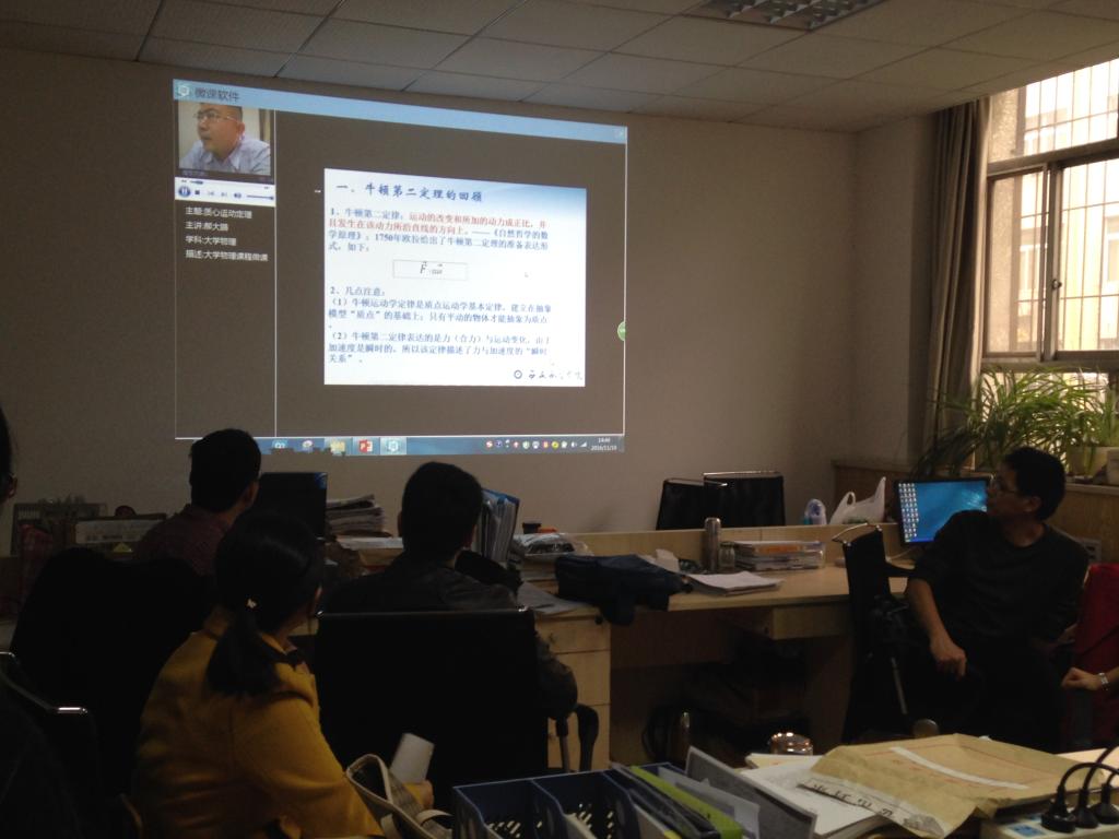 11月18日下午2:30,澳门pg官方电子平台物理教研室在教学北楼215室召开了主题为“微课培训”的教研活动,参加此次活动的有澳门pg官方电子平台副院长丁琦、物理教研室主任郝大鹏、副主任韩鹏斌及物理教研室全体老师,同时还邀请了督导办史历、能源与建筑学院杜鹃、数学教研室韩慧蓉等教师参加。