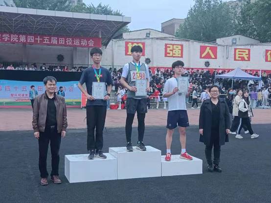 运动会中,信息计算182班丁宁获得男子组铅球第一名、男子组背抛实心球第二名,信息计算201班胡瑞静、信息计算202班刘晓伊、惠鑫洋、刘静获得女子组4×100米接力第二名,信息计算192班聂志龙获得男子组三级跳远第五名,光电信息202班马伊坤获得男子组1500米第七名,我们用实力证明,所有的付出皆有回报,所有的努力皆有收获!