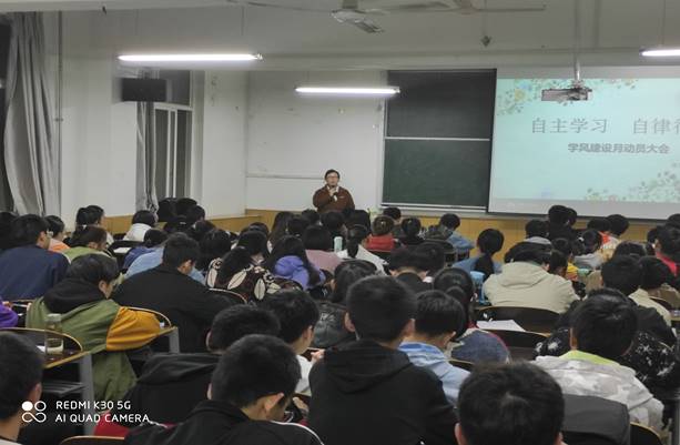 为了引导学生养成自主学习和自律行为的良好习惯,更好的迎接学校本科教学评估,2020年10月14日晚,澳门pg官方电子平台在南楼307教室开展了“自主学习、自律行为”主题学风建设月动员大会。