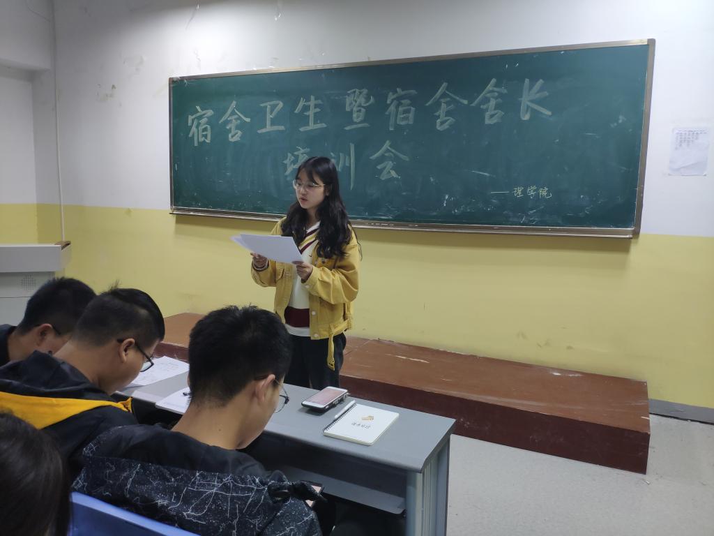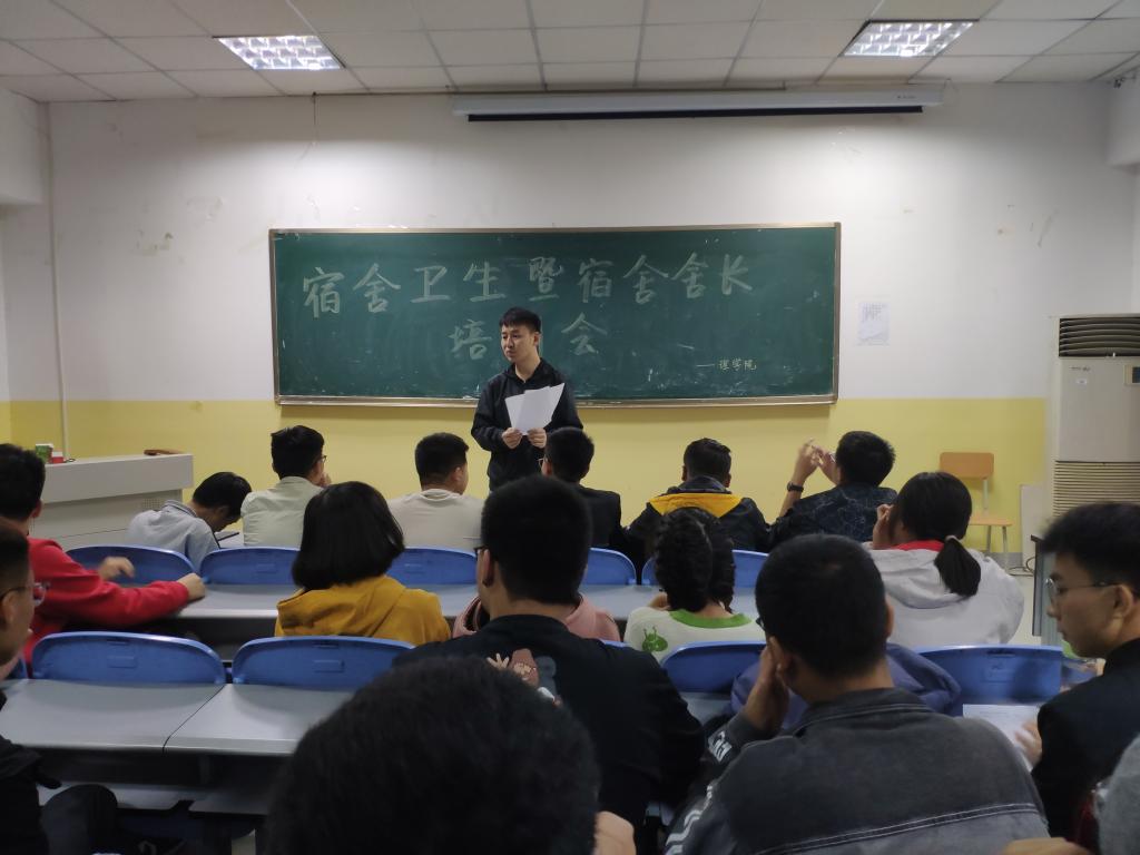 2019年10月10日晚上19时,为给同学们营造良好的宿舍生活环境以及确保卫生评比的顺利进行,由杨陈东老师带领大家进行了学习,参与此次会议的人员有全院大一大二团支书、心理委员,院学生会生活部干事,以及全体新生宿舍舍长。