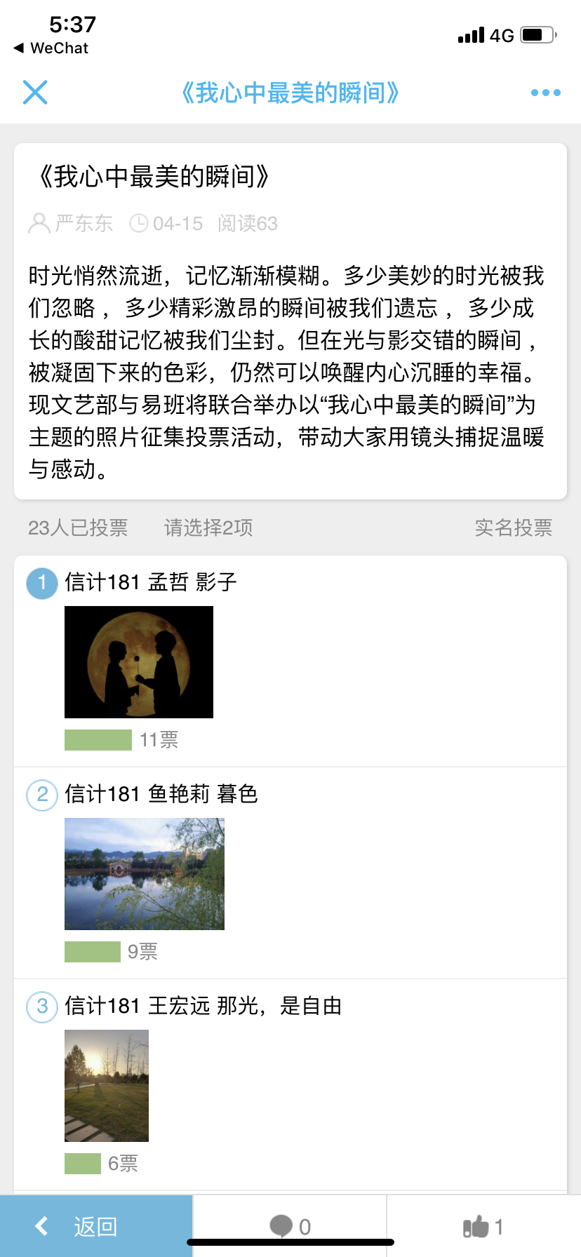 2019年4月15日,澳门pg官方电子平台文艺部与易班工作站在易班线上联合开展了以“我心中最美的瞬间”为主题的活动。