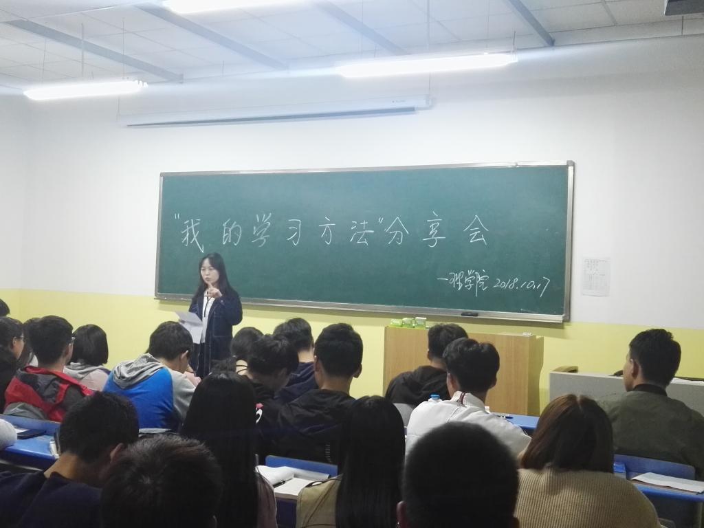 2018年10月17日晚8点,由澳门pg官方电子平台学习部部长荔阿翠主持的“我的学习方法”分享会在南楼405召开,会议邀请到四位荣获国家级奖学金获得者,大一全体新生参加了此次分享会。