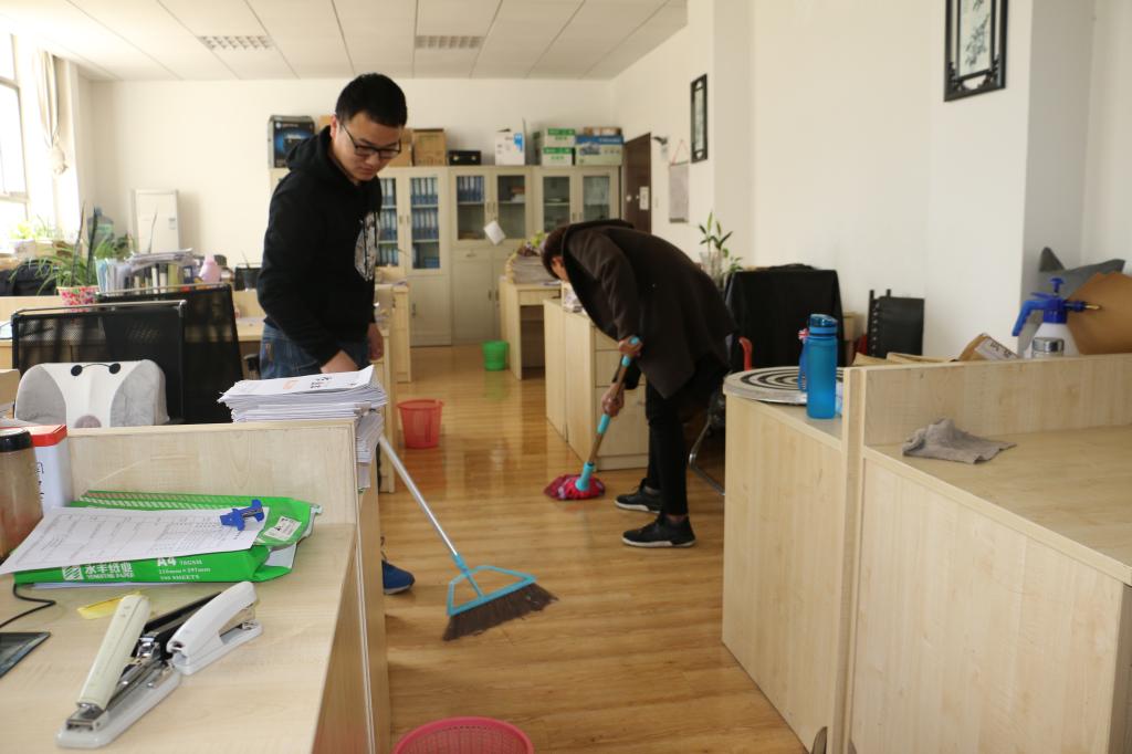 本次活动是将到来的志愿者们分出5部分分别对澳门pg官方电子平台教师休息室、实验室进行地面的擦洗。在活动过程中,同学们热情洋溢的进行清扫活动,展现了志愿者们阳光向上,精神饱满的良好状态,在大家齐心协力的合作下,终于将办公室上下打扫的干干净净,老师们也很满意的夸赞志愿者。