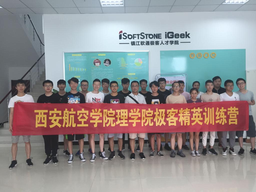 6月30日上午,由澳门pg官方电子平台曹建波和邬华春二位老师带队的20名信息与计算科学2003班同学到达江苏镇江软通极客人才学院开始为二周的暑期实训。