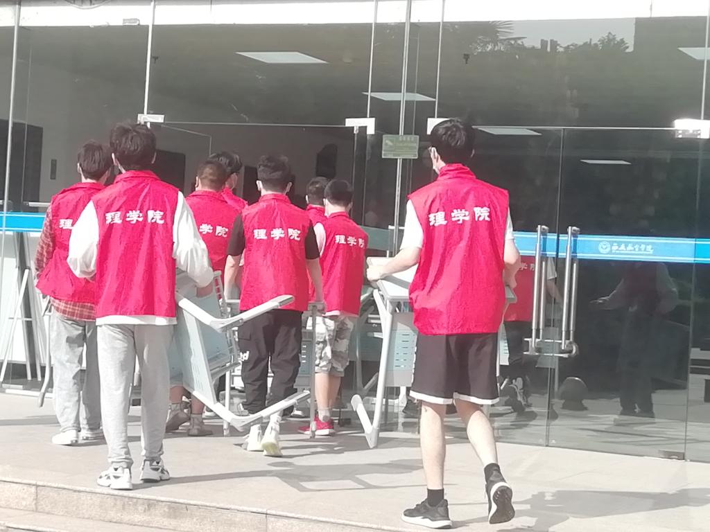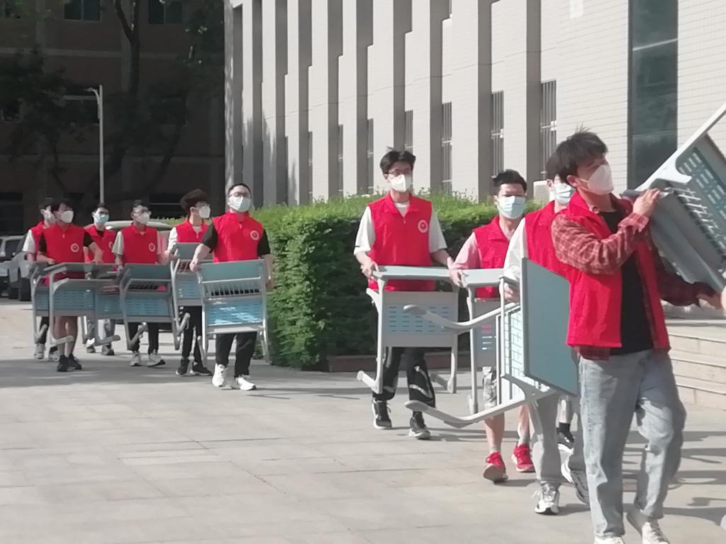 4月10日,为保障线下教学工作的有序开展,澳门pg官方电子平台组织“爱国卫生运动”志愿服务活动,各班级同学彻底清扫负责教室,为线下教学工作做好准备,确保线下教学正常进行。20位志愿者将3号学生公寓疫情防控期间的值班桌子搬回教室,保障正常教学工作。搬运完毕后,志愿者们统一做好消杀工作。