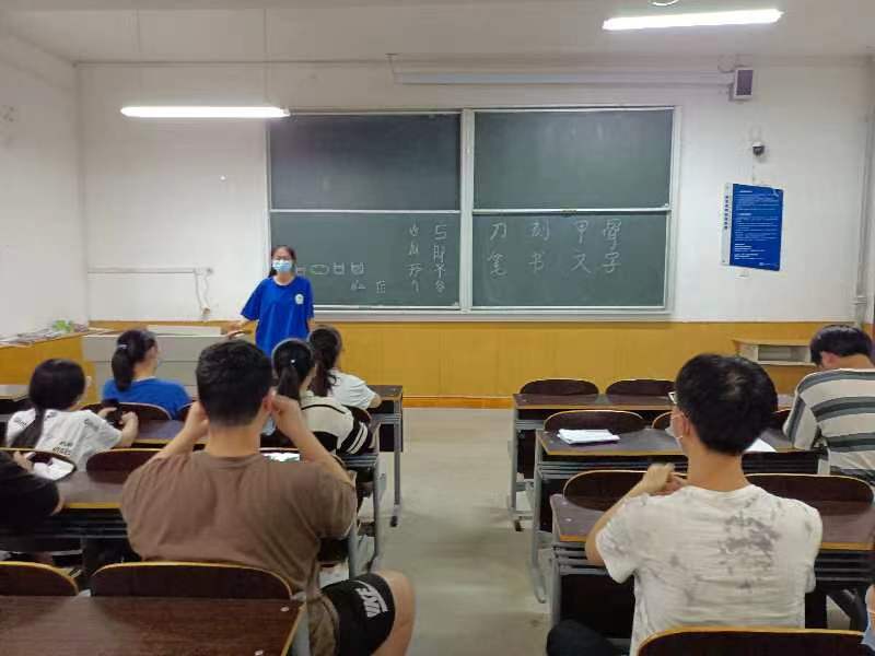 为丰富学生课余生活,活跃校园文化氛围,2022年6月30日下午19点30分,澳门pg官方电子平台于南楼307教室举办“刀刻甲骨,笔书文字”汉字文化宣传活动,澳门pg官方电子平台20余名同学参加,活动由姜子娟主持。