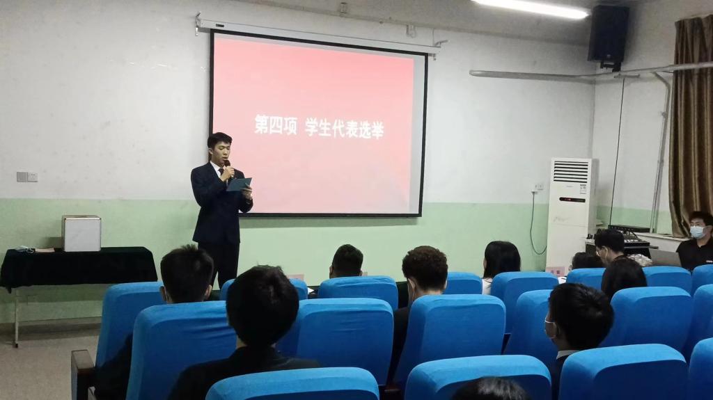 2023年3月13日晚18时,澳门pg官方电子平台第四次学生代表大会在教学北楼447召开,澳门pg官方电子平台党总支书记李小光、副院长丁琦、学生管理科科长李扬、团总支书记张岩、辅导员王向阳及学生代表等40余人参加。会议由何子杰主持。
