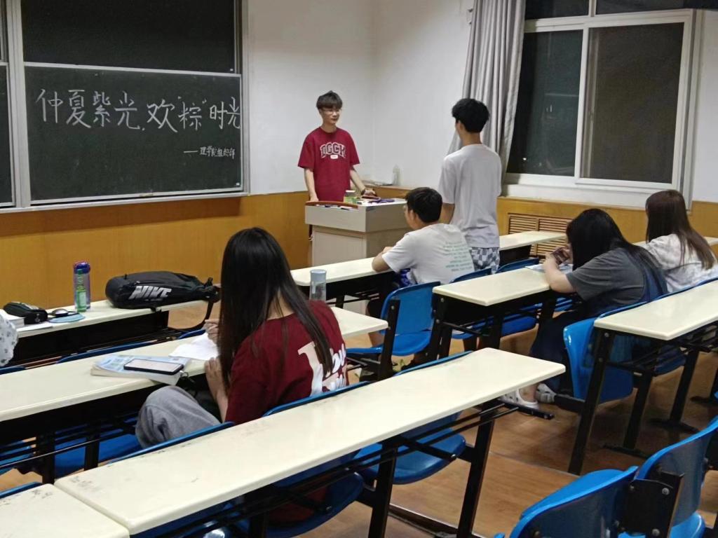 为弘扬我国传统文化,增强学生文化认同,6月20日晚,澳门pg官方电子平台团总支在莲湖校区南楼308教室开展了“仲夏紫香,欢‘粽’时光”主题文化宣传活动。