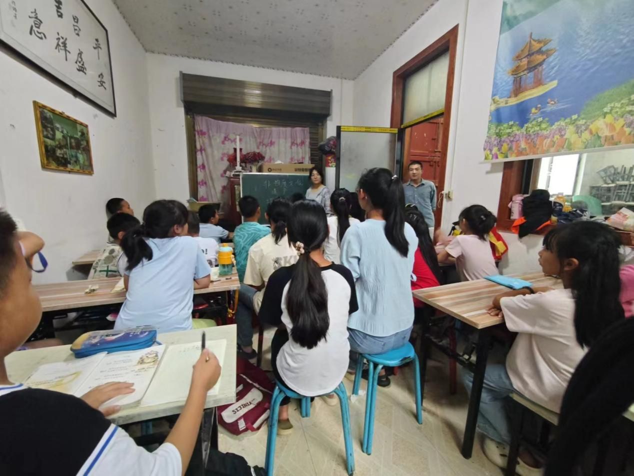 次日实践队赴大荔县安仁镇向小学生宣传非遗文化。实践队成员利用精美的图片、简短的文字说明向大家展示大荔县的非物质文化遗产,让同学们近距离感受非物质文化遗产的独特魅力,感受本土非遗文化的无穷魅力,增强同学们对非遗文化的了解和热爱,为继承和弘扬非遗文化贡献青春力量。