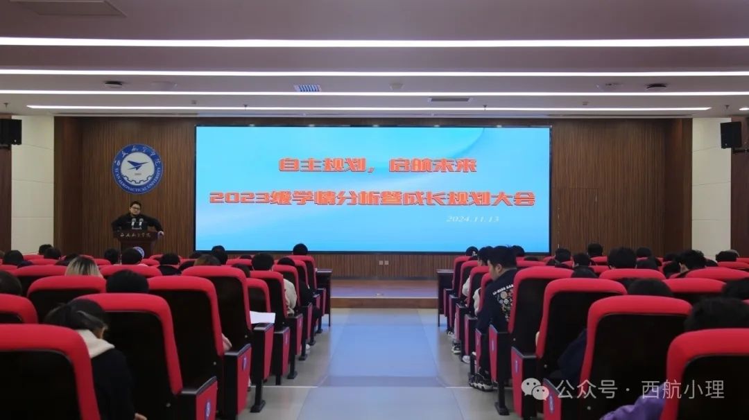 为了全面助力2023级学生明晰学业方向、剖析自身状况。澳门pg官方电子平台于2024年11月13日在图书馆五楼报告厅举行了主题为“自主规划,启航未来”的学情分析暨成长规划大会。2023级全体学生到场参会,党总支书记胡红亮、学生办公室主任李扬出席,会议由辅导员王向阳主持。