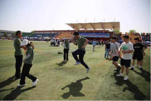 趣味运动会的师生跳大绳现场,摇绳者默契甩动长绳,参赛师生鱼贯而入,轻盈跳跃。老师们一改严肃,和学生们配合无间,偶尔绊绳也不气馁,欢声笑语中,师生同频跳动的身影,成为春日校园最温暖的风景。