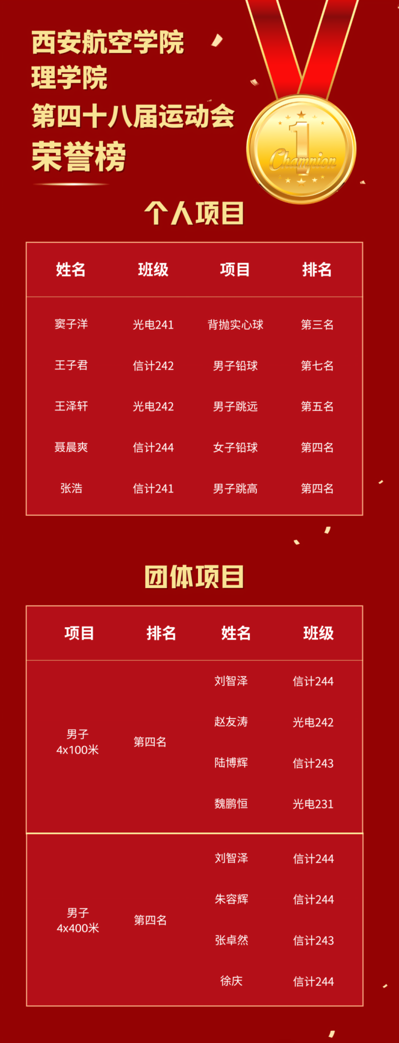 4月18日下午,随着颁奖仪式的结束,澳门pg官方电子平台第四十八届运动会圆满落下帷幕。历经两天的拼搏奋斗,在澳门pg师生的共同努力下,学院荣获优秀组织奖、2024年度体育工作先进单位。理院学子在本次运动会个人和团体项目中表现出色,多名同学斩获佳绩,充分展现了理院学子的体育风采与拼搏精神。运动会的结束不是终点,而是新的起点。那些在赛场上迸发的激情、收获的友谊,都将成为前行路上的宝贵财富。