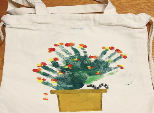 活动过程中,大家以“地球家园”“绿色生活”为主题,用彩笔在空白布袋上绘制蓝天白云、青山绿水、可爱动植物等图案,将环保理念融入灵动的笔触中,积极参与环保布袋DIY创作,处处洋溢着环保与创意交织的活力。一个个独具创意的布袋相继诞生。光电243张之祺同学讲解自己的创作理念“自己绘画的海洋相关元素,是在强调海洋生态系统的丰富性和脆弱性,呼吁大家重视海洋生物多样性保护,减少对海洋的污染和破坏,共同守护绿色海洋家园。”
