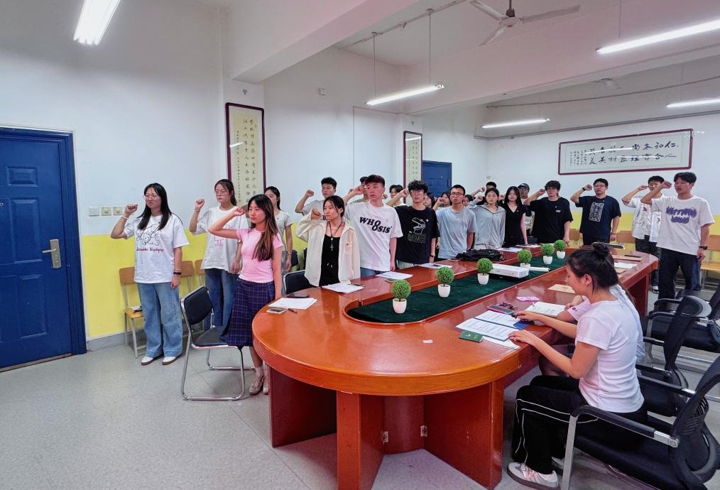 为加强团组织建设,激励青年团员勇担时代使命,澳门pg官方电子平台团总支于5月20日晚在南428会议室举办新发展团员入团宣誓仪式。团总支书记王向阳、辅导员曾妍,全体新发展团员参与本次会议。