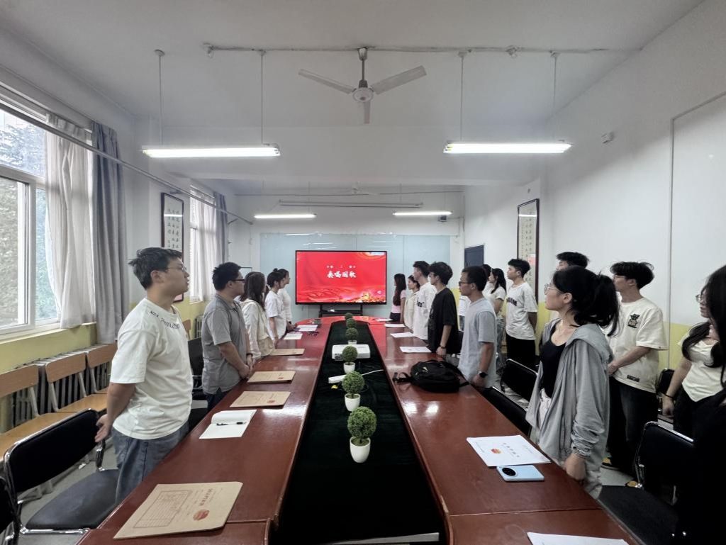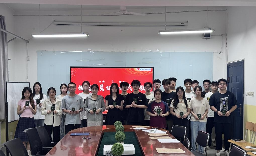 大会在《义勇军进行曲》中拉开了序幕。首先,由主持人宣读2025年新发展团员名单。在热烈的掌声中,王向阳、曾妍逐一为新团员颁发团员证及佩戴团徽。全体新团员面向团旗进行庄严宣誓:“我志愿加入中国共产主义青年团……”铿锵誓言回荡全场,展现出青年一代听党话、跟党走的坚定信念。新团员代表王韵超在发言中郑重承诺:“我们将以团员标准严格要求自己,勤奋学习、积极进取,用行动为团旗增色、为团组织添彩!”随后,全场齐唱共青团团歌,激昂的旋律为活动画上圆满句号。