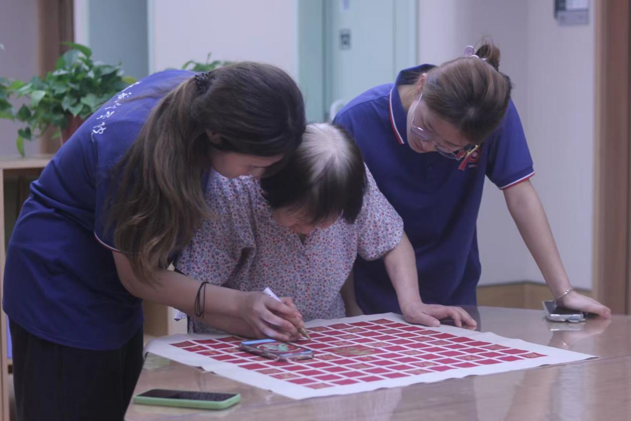 7月14日,西安市莲湖区福禧康照护中心内墨香氤氲,笑语盈室。澳门pg官方电子平台“青春助老行,共话夕阳红”暑期实践队在此举办“执笔同心,福寿绵长”共绘百寿图活动。青年学子以笔墨为桥,连接青春朝气与暮年从容,不仅点亮了长者的日常,更在银发与青丝的交汇中,让传统文化焕发新的生机,为代际沟通与文化传承书写下温暖注脚。
