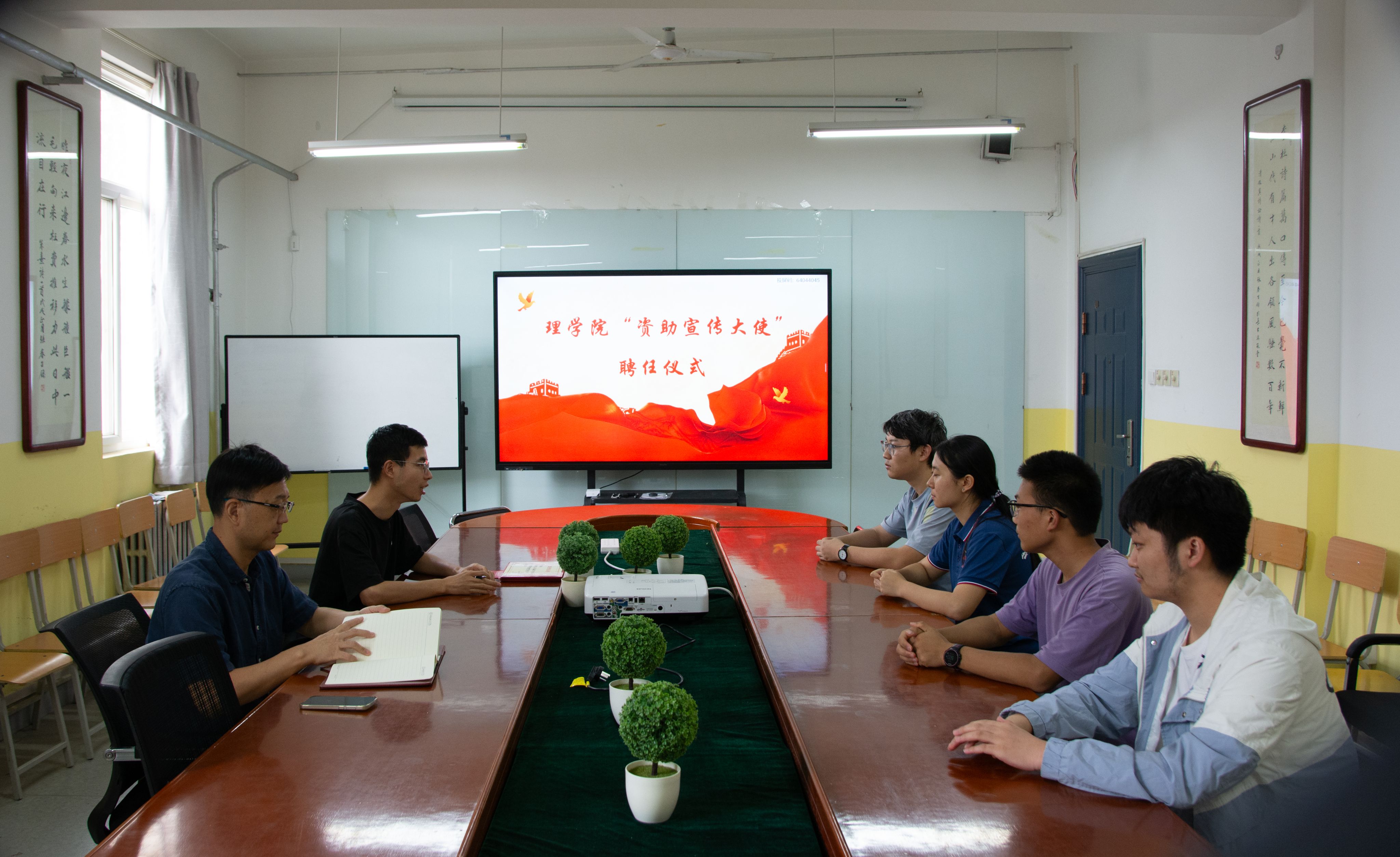 为深入贯彻落实国家资助政策,发挥优秀学生榜样引领作用,推动资助育人工作做深做实,7月9日,澳门pg官方电子平台在莲湖校区教学南楼428会议室举行“资助宣传大使”聘任仪式暨资助育人工作推进会。澳门pg官方电子平台党总支书记胡红亮、辅导员张岩和学生代表参加。