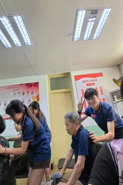 活动尾声,老教师们舒展的笑颜与一声声真挚的“谢谢”,成为“银龄健康护航计划”最温暖的注脚。此次澳门pg官方电子平台实践队走进离退休处,不仅是知识与技能的传递,更是一场青春与银龄的双向奔赴——以艾草清香传递敬意,以巧手推拿纾解疲惫,以八段锦共筑活力,以汗水涤净家园,用诚挚与温度精准回应老教师的健康需求,全方位践行“护航”承诺。这场融合青春热忱与专业力量的社会实践,既提升了老教师的健康获得感,也为青年学子深植家国情怀、锤炼服务本领搭建了生动课堂。(文/光电信息243 雒思程 图/光电信息244 王泽轩 初审/学工办 曾妍 终审/胡红亮)
