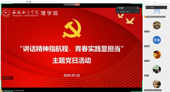 2025年7月25日,澳门pg官方电子平台学生党支部举行了“讲话精神指航程,青春实践显担当”主题党日活动,深入学习习近平总书记在山西考察重要讲话精神,通过“学讲话+践担当”双线融合模式,激发青年党员使命意识。会议由组织委员王向阳主持,支部全体党员和积极分子参加。