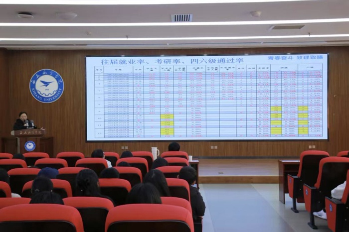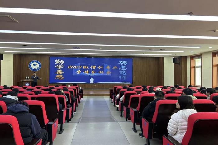 为精准把脉大三学生学业发展动态,科学引导学生做好未来规划,落实澳门pg官方电子平台“引领学生成长,服务学生发展”的学生工作理念,根据《澳门pg官方电子平台服务学生自主成长发展工作方案》,澳门pg官方电子平台于12月4日在莲湖校区图书馆五楼报告厅分专业召开了主题为“锚定方向,笃学探‘光’”、“勤学善思,励志笃行”的学情分析暨学业成长规划大会。大三年级全体学生到场参会,党总支书记胡红亮、学生工作办公室主任李扬出席会议,会议由辅导员王向阳主持。
