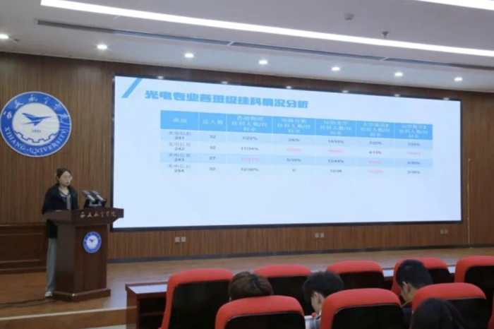 会议通过对上一学年学业数据的系统分析,帮助学生明晰毕业要求与学习目标,引导学生自主查漏补缺,为后续学习奠定坚实基础。同时,紧密结合往届毕业生的去向落实情况、考研专业选择方向等实际数据,为学生提供前瞻性的指导与参考。光电信息科学与工程专业王诗媛同学、信息与计算科学专业翟樱瑞同学作为优秀学生代表,结合自身大一学年的学习经历与心得,分享了在时间管理、学习方法、兴趣培养等方面的宝贵经验,为同学们提供了有益的借鉴。