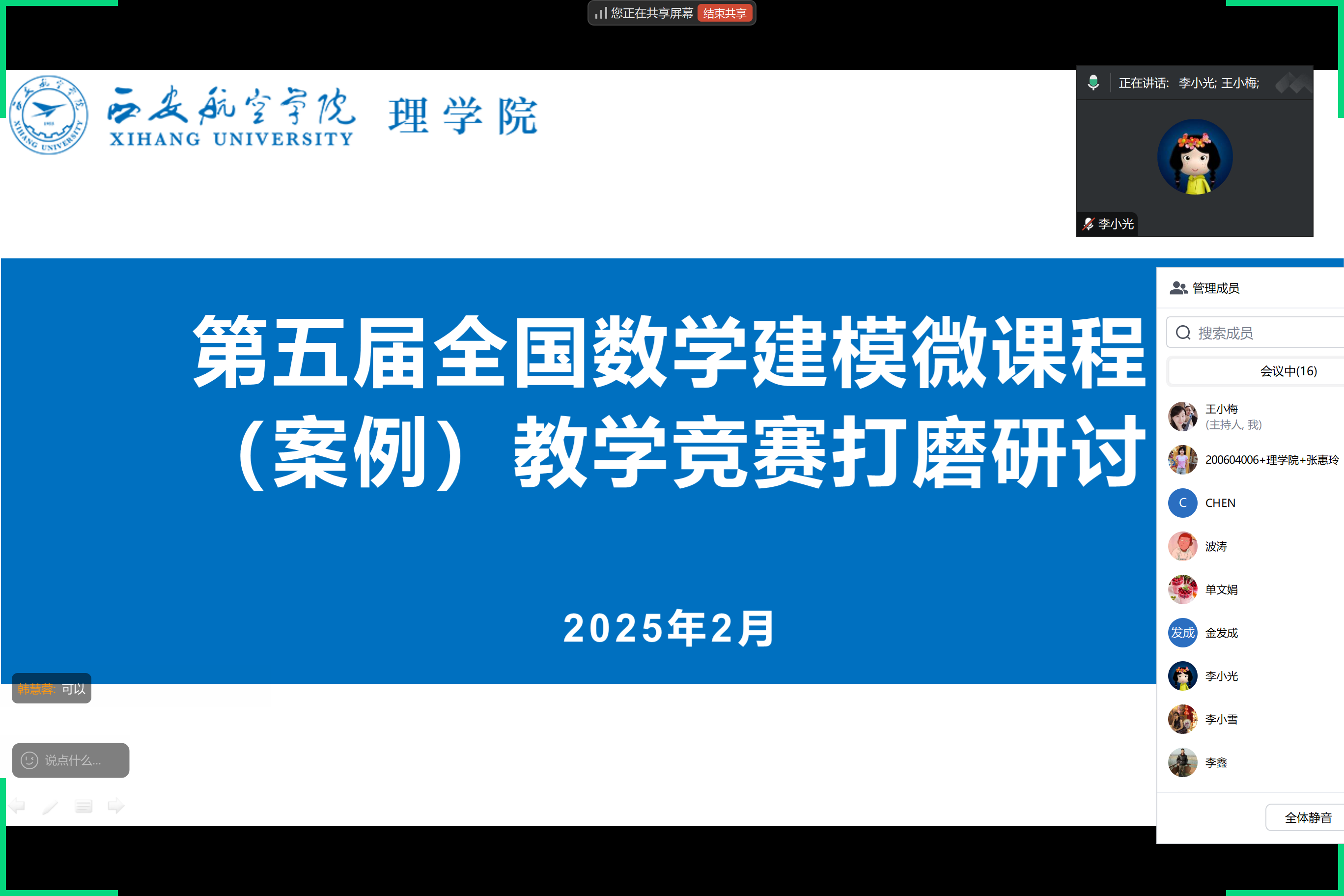 为进一步提升数学建模课程教学质量,推动教学成果凝练与申报,澳门pg官方电子平台于2月21日开展了“第五届全国数学建模微课程(案例)教学竞赛”与“2025年教学成果奖申报书”打磨研讨会。学院院长李小光、副院长韩慧蓉及骨干教师参加了此次活动,会议由院长助理王小梅主持。