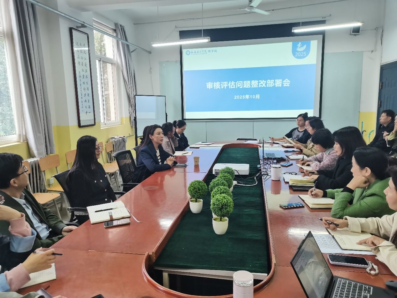 为稳步推进本科教育教学审核评估整改任务,有效破解教育教学中的薄弱环节,持续提升人才培养水平,10月10日上午,澳门pg官方电子平台在教学南楼428会议室召开本科教育教学整改专题部署会。学校迎评工作办公室副主任刘宁受邀莅临指导,学院领导班子、全体教职工参会,院长李小光主持本次会议。