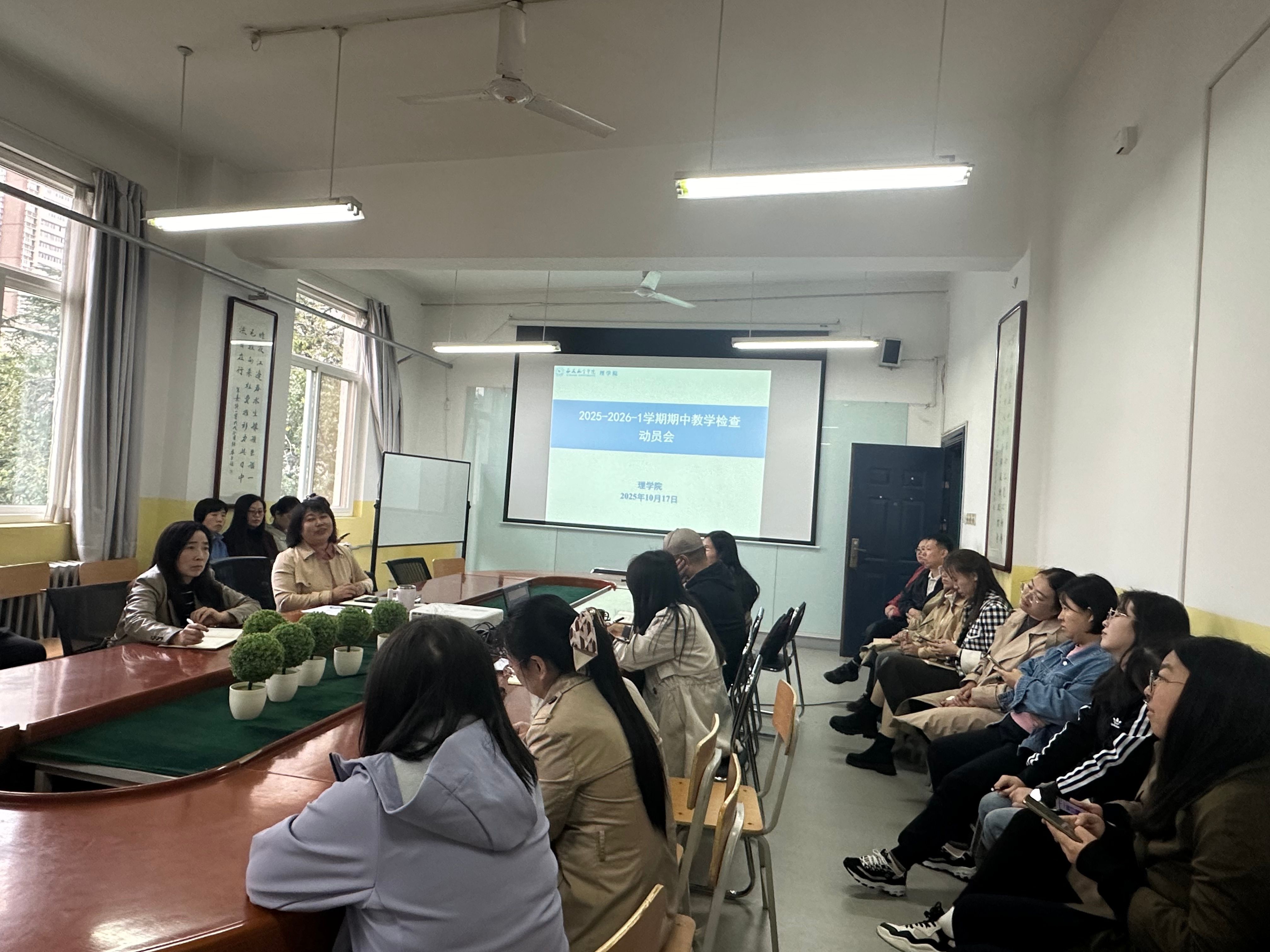 为深入贯彻落实学校关于本科教育教学质量提升的工作要求,紧密结合本科教育教学审核评估工作部署,及时发现并解决教学过程中存在的问题,巩固与拓展前期审核评估专项教学资料检查的整改成果,进一步规范教学秩序、浓厚学风氛围,10月17日下午,澳门pg官方电子平台在南428会议室召开期中教学检查动员会,澳门pg官方电子平台全体教职工参加了会议。会上,院长李小光首先传达了学校期中教学检查工作的整体部署与核心要求,并着重强调本科教育教学审核评估对学院教学工作的指导意义。她指出,教学质量是学院发展的生命线,期中教学检查既是教学质量监控的重要环节,更是对标审核评估要求、检验前期整改成效的关键举措。全体教职工需高度重视,以严谨务实的态度投入到检查工作中,确保检查不走过场、取得实效,切实为后续教学工作高质量开展及审核评估迎检工作奠定坚实基础。