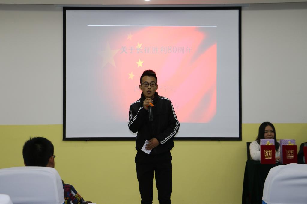 来自大一和大二的8位选手进行了激烈的角逐,他们用精彩表现展现了当代大学生的良好风貌。在比赛中,选手们围绕红军长征胜利的伟大意义、光辉历程和宝贵经验,畅谈学习长征精神、继承先烈遗志的心得体会。最终,来自信息与计算科学1901班的寇帅佳同学获得一等奖,评委们为获奖选手颁发了荣誉证书和奖品,并合影留念。