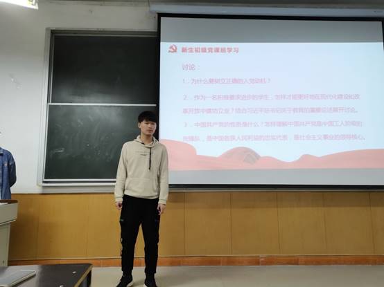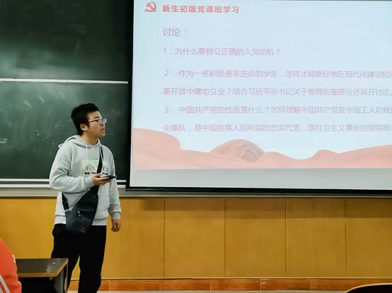 最后,李扬组织大家开展了以“为什么要树立正确的入党动机”、“当代大学生为什么要认真学习党史”等主题的讨论座谈会,她指出,只有树立正确的入党动机,才能经受起组织的考验,正确的入党动机是正确行动的精神推动力量。