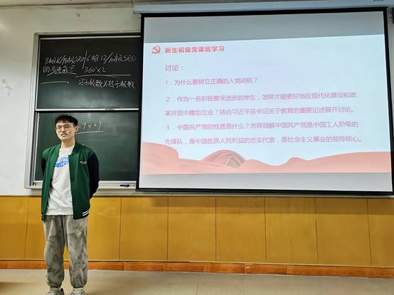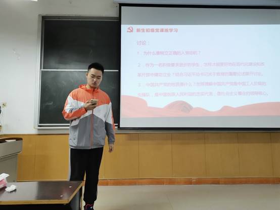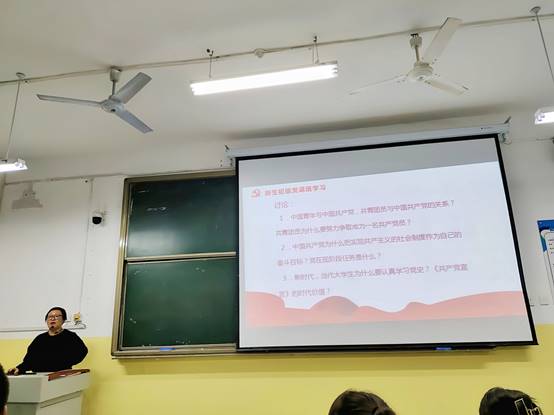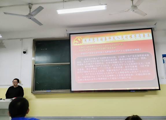 丁琦为大家讲解了当代大学生与中国共产党的密切联系以及对学生党员的具体要求。