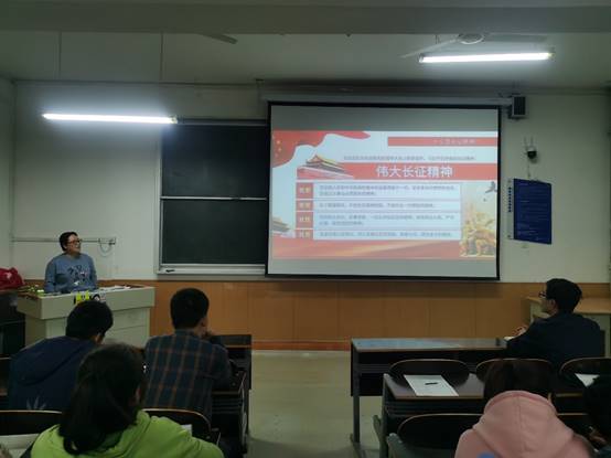 4月28日下午19时,澳门pg官方电子平台学生党支部在南楼307举办“重温长征精神”主题党日活动,澳门pg官方电子平台全体党员,积极分子参加此次活动。本次党日活动主要由澳门pg官方电子平台学生党支部书记李扬老师给大家讲授长征精神的内涵。
