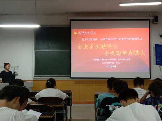 2021年6月8日,澳门pg官方电子平台于南楼307教室举办了“传承红色精神,共话百年征程”党史学习微宣讲,此次宣讲会由杨洁主持,澳门pg官方电子平台全体大一学生参加。