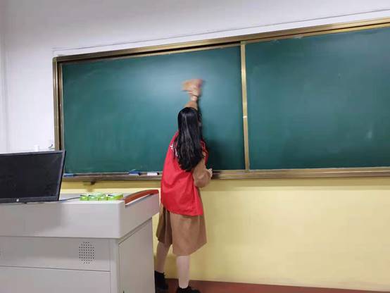 本次志愿打扫教室卫生活动以保障同学们有一个干净整洁的学习环境为目的,澳门pg官方电子平台第九期发展对象积极参加本次活动,利用课余时间,清扫了教室以及走廊的卫生。活动开始之前,大家都穿上了标志着志愿者的红马甲,随后,由负责同学安排分配,大家有序地开展起打扫教室活动。