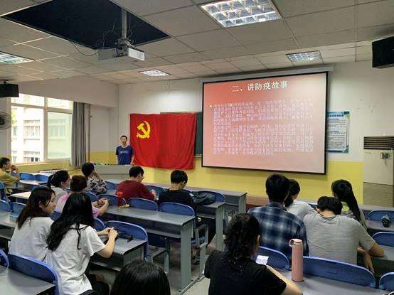 澳门pg官方电子平台澳门pg官方电子平台学生党支部于2020年6月28日下午4:30在教学南楼408开展“党旗飘扬筑牢红色防火墙”主题党日活动,主要由党支部书记李扬给大家讲党课。