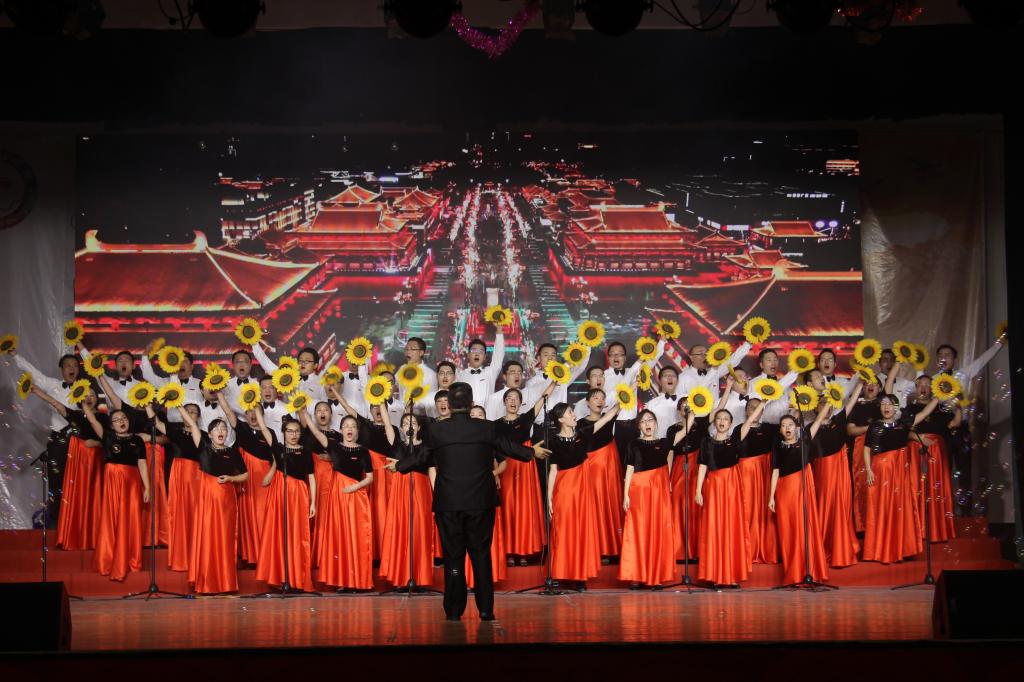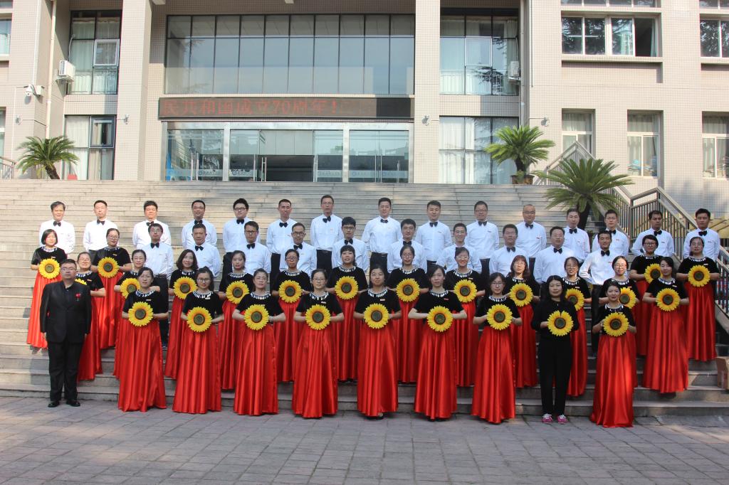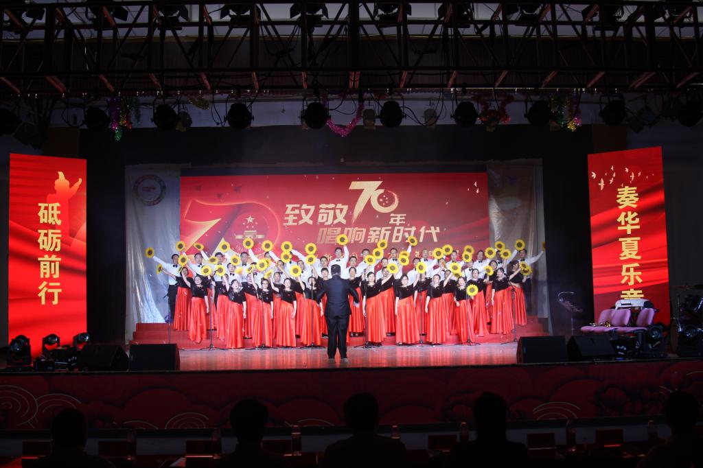 为庆祝中华人民共和国成立70周年,表达对伟大祖国的深情祝福,继续推进“不忘初心,牢记使命”主题教育,9月27日晚,澳门pg官方电子平台“致敬70年唱响新时代”庆祝新中国成立70周年歌咏展演活动在沣惠校区隆重举行。由澳门pg官方电子平台党政领导及全体教职工组成的合唱团以《在希望的田野上》为表演曲目参加了展演活动。