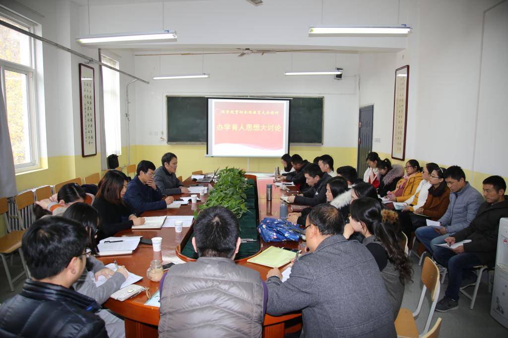 12月7日下午,澳门pg官方电子平台在南428会议室开展贯彻全国教育大会精神办学育人思想大讨论活动,副校长宋文学、澳门pg官方电子平台院长岳忠玉、党总支书记李小光、副院长丁琦以及澳门pg官方电子平台全体教职工参加本次活动。活动由岳忠玉主持。
