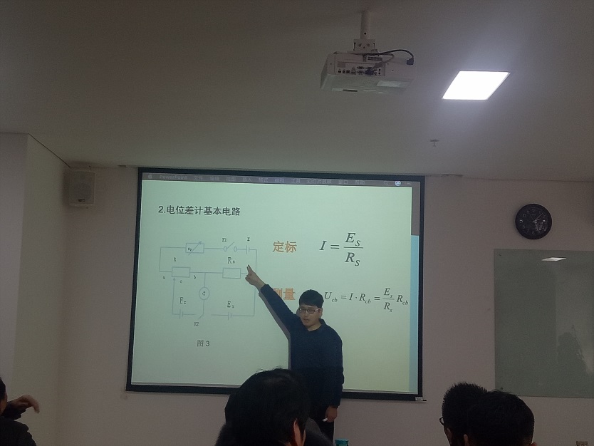 研修班还特别安排了教学试讲点评与讨论环节,共选取6位教师进行试讲,分两组进行,8位专家对每位老师的试讲进行点评,指出每位教师讲课的亮点与有待改进的地方,并与现场老师们就实验教学的各个方面进行深入讨论。其中,邬华春老师就参加了试讲环节,试讲题目为“电位差计测量电源电动势”,邬华春思路清晰、讲解细致受到专家的一致认可,但也存在一些不足,如扩展不够、PPT制作不够精美等。专家的点评为邬华春以后的讲课比赛提供了改进的思路和方向。