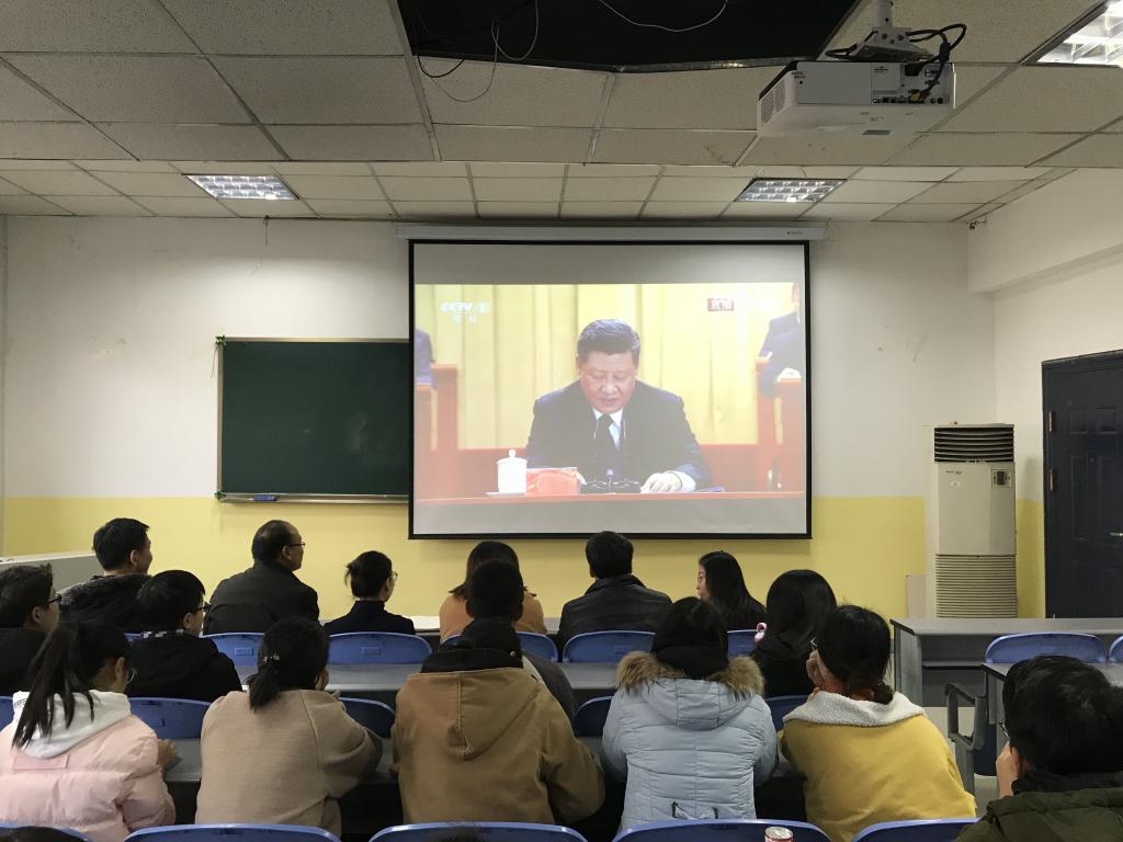 2018年12月18日,澳门pg官方电子平台党总支于南教学楼408教室,集体观看和学习了庆祝改革开放40周年大会直播,党总支书记李小光,院长岳忠玉,副院长丁琦,学生党支部书记曹建波,团总支书记、辅导员杨陈东,部分党员教师以及学生党员、积极分子共20余人参加了此次观影活动。